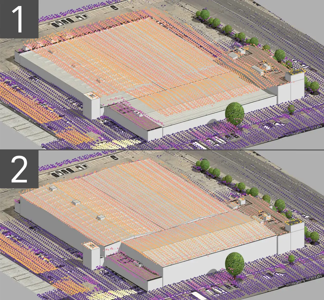 Cela alignera automatiquement le nuage de points avec l’image aérienne et ajustera la hauteur, l’inclinaison et l’orientation des toits :